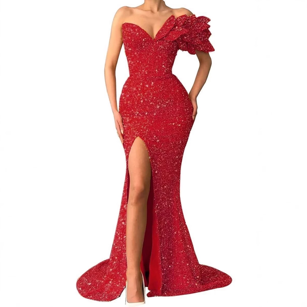 Ball dress one-shoulder sequin prom graduation dress